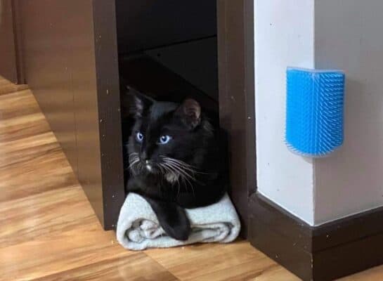 I was pretty scared at first but now I like to chat, spend time near my foster family and get my nightly treat.