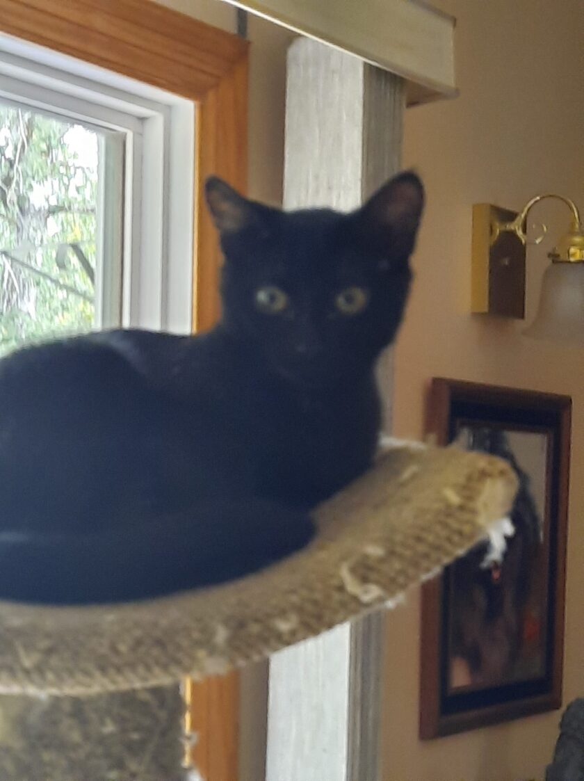 Meet Bo.She is just under four months old (born in June 2022) and is sister to Liam and Sweet Pea. Bo is tiny. She has come out from hiding and loves to play out in the house. She is very loving when she is secure and doesn’t mind the resident dog.