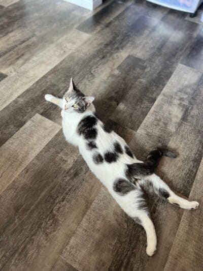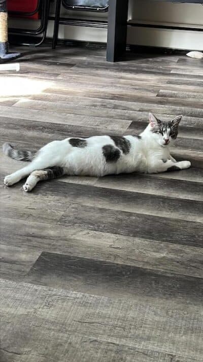 Hi, my name is Goose! Im often too busy for pictures. Foster mom says I am a very sweet and loveable girl. My favourite things in life are sleeping, eating, and cuddling.