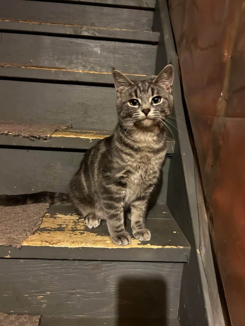Good with other cats – very very curious about them. She’s also good with dogs, as long as they’re not super energetic and come on too strong, the bigger the dog the more wary she is but she doesn’t mind hanging out with them once she gets a good sniff. This little kitty has come a long way, she is still nervous meeting humans for the first time but once she realizes that she’s safe, she becomes a huge purr machine.