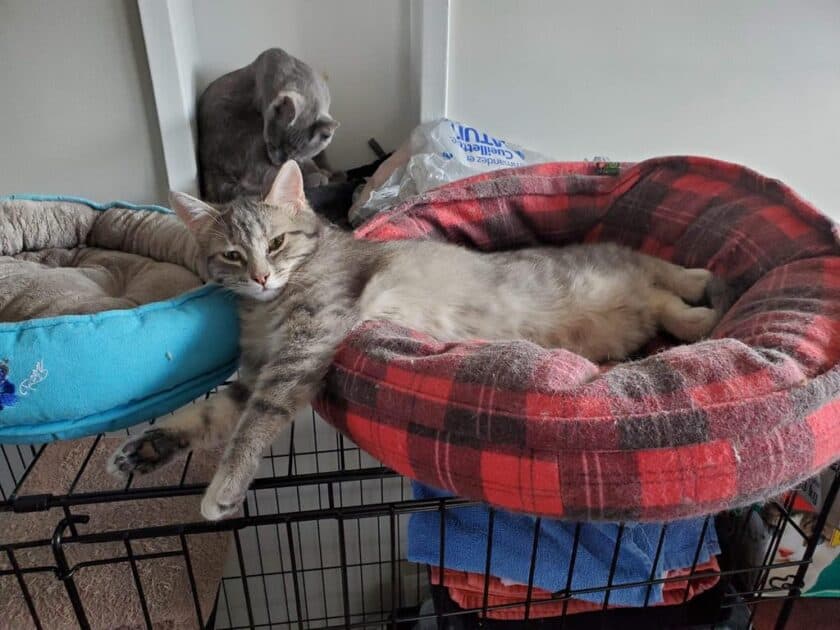 Hey, I’m Solstice. I’m the sister of Mystique and was born outside in November of last year. We’re pretty similar. I love to play and love catnip too. I can get along with other cats and dogs. When I relax, I love to purr and purr. It would be great to find a forever home where I can live and play and love.