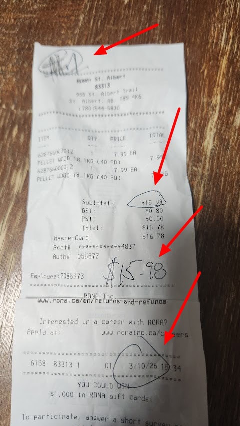 • At the bottom of the purchase receipt, write the total amount requested in pen.